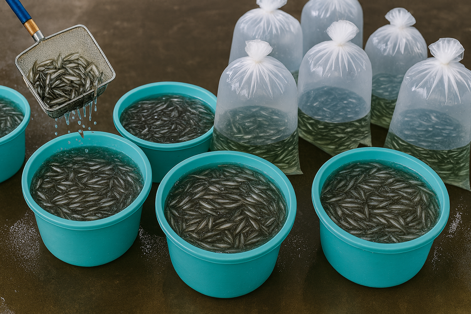 Our fry are handled with strict biosecurity protocols and transported using oxygen-packed systems to maintain freshness and safety during international shipping.
