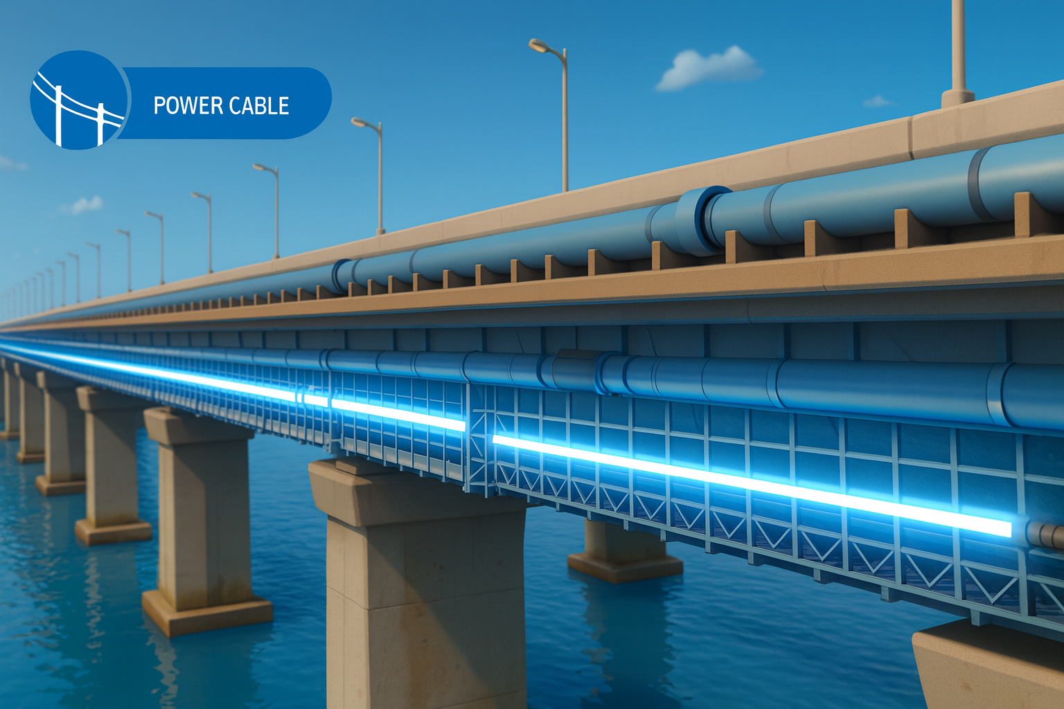 “Integrated Power Cable Infrastructure Across Modern Bridge – High-Voltage Transmission Over Water”